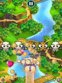 简单归简单,可一点也不失趣味性噢。在这里要强调两个小窍门儿,首先在屏幕上向上滑动,就可以使用强力冲击摧毁前方一切目标。那种钱如雨下的感觉一定会很爽吧。当在屏幕上向下滑动时,便能大幅降低怪物的下落速度,这在游戏后期可能会成为玩家的救命稻草噢。当然在每局游戏中道具的使用次数是有限制,如何分配好游戏道具使用的时机,那可就要考察玩家的谋略能力咯。