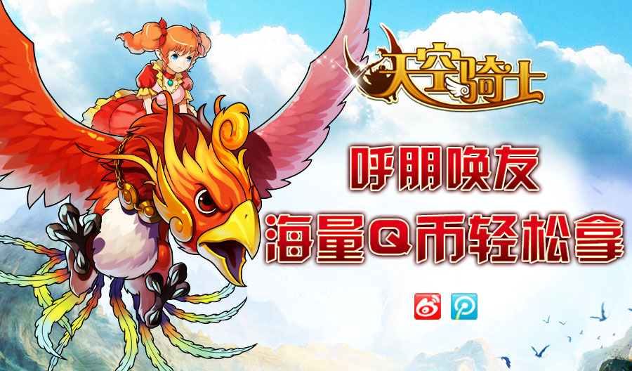 新浪微博的朋友们也不要着急,接下来就该是属于你们的活动咯。7月4日-7月18日参加《天空骑士》新浪微博官方活动,转发活动微博。活动结束时,你的转发量排在前十名就可以获得10元Q币卡或QQ红钻啦。一键转发,让你的好友跟你一起转起来吧,看看谁才是那个一呼百应的人气王!