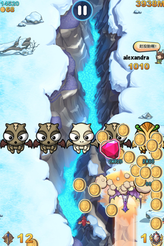 《天空骑士》今天开启了"超越好友"系统,十分有趣。当你的成绩即将超越好友的时候,就会出现"还需要飞多少米就能超越"的提示。此时,还能看到好友的各种嘲讽。无视他们,勇往直前,一飞冲天吧!因为一旦成功超越某位好友的成绩,就会出现数量庞大的金币奖励。如果你的成绩足够彪悍,那么好友看着你的成绩也只能望洋兴叹了。