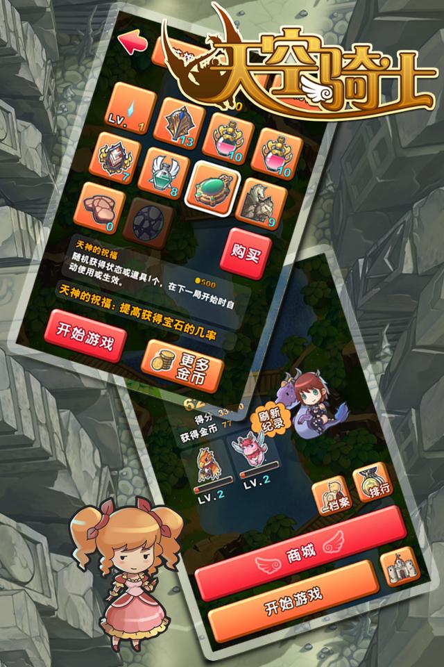 还在看着朋友、同事的跑酷记录都在几万之上,而自己却久久卡在一万以内无法上升?还在为自己分数过低不好意思分享跑酷记录而耿耿于怀?2013年第一飞行跑酷游戏《天空骑士》,妙用萝莉,让你成为安卓版的高分达人!