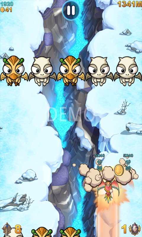 《天空骑士》中共有12种宠物,每种都具有独特的造型和攻击特性,分别对应:普通、火焰、闪电、冰霜。而且宠物还拥有升级系统,只要您带着宠物出征,就能获得宝贵的战斗经验。由于每次只能带两只宠物,如何编队就需要您深思熟虑了。