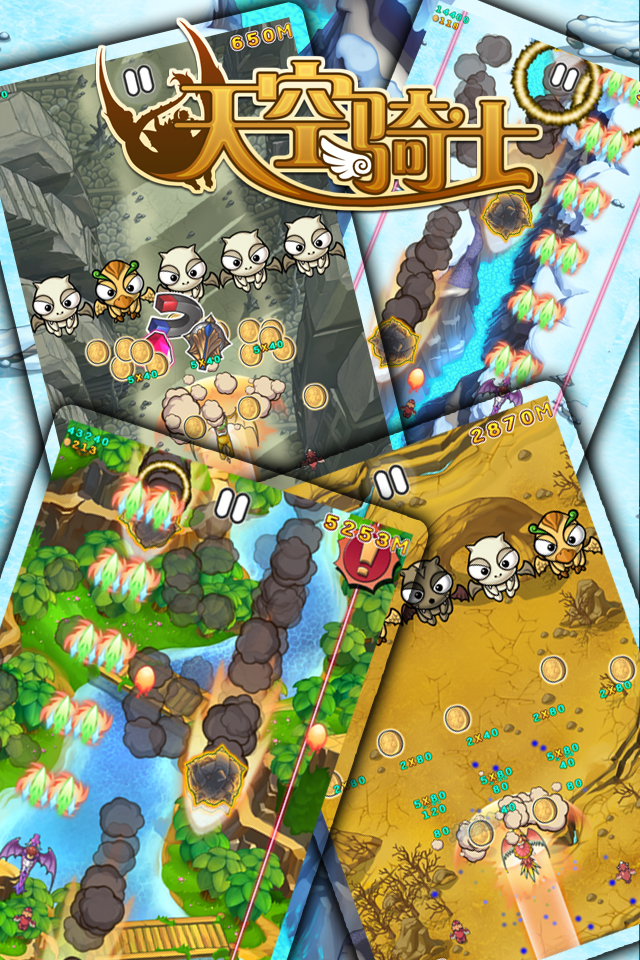 没有金币升级,子弹威力小怪物血太厚,只能见而避之的时代就要终结啦!2013年第一飞行跑酷游戏《天空骑士》,IOS新版本即将上线,金币多多助力你的极限跑酷。
